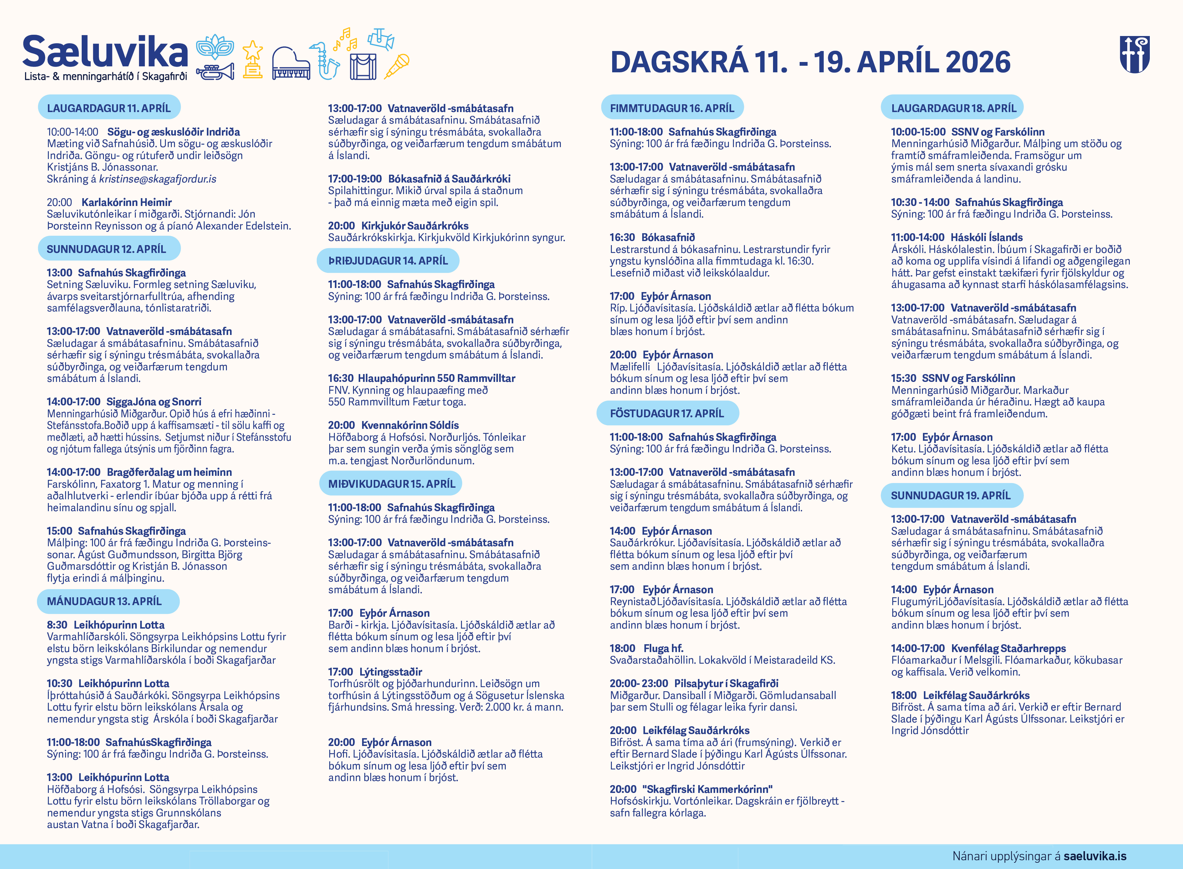 List- og verksýning nemenda í Varmahlíðarskóla. Sýningin stendur uppi til 5. maí. Ekki er auglýstur sérstakur opnunartími en yfirleitt hægt að kíkja inn.